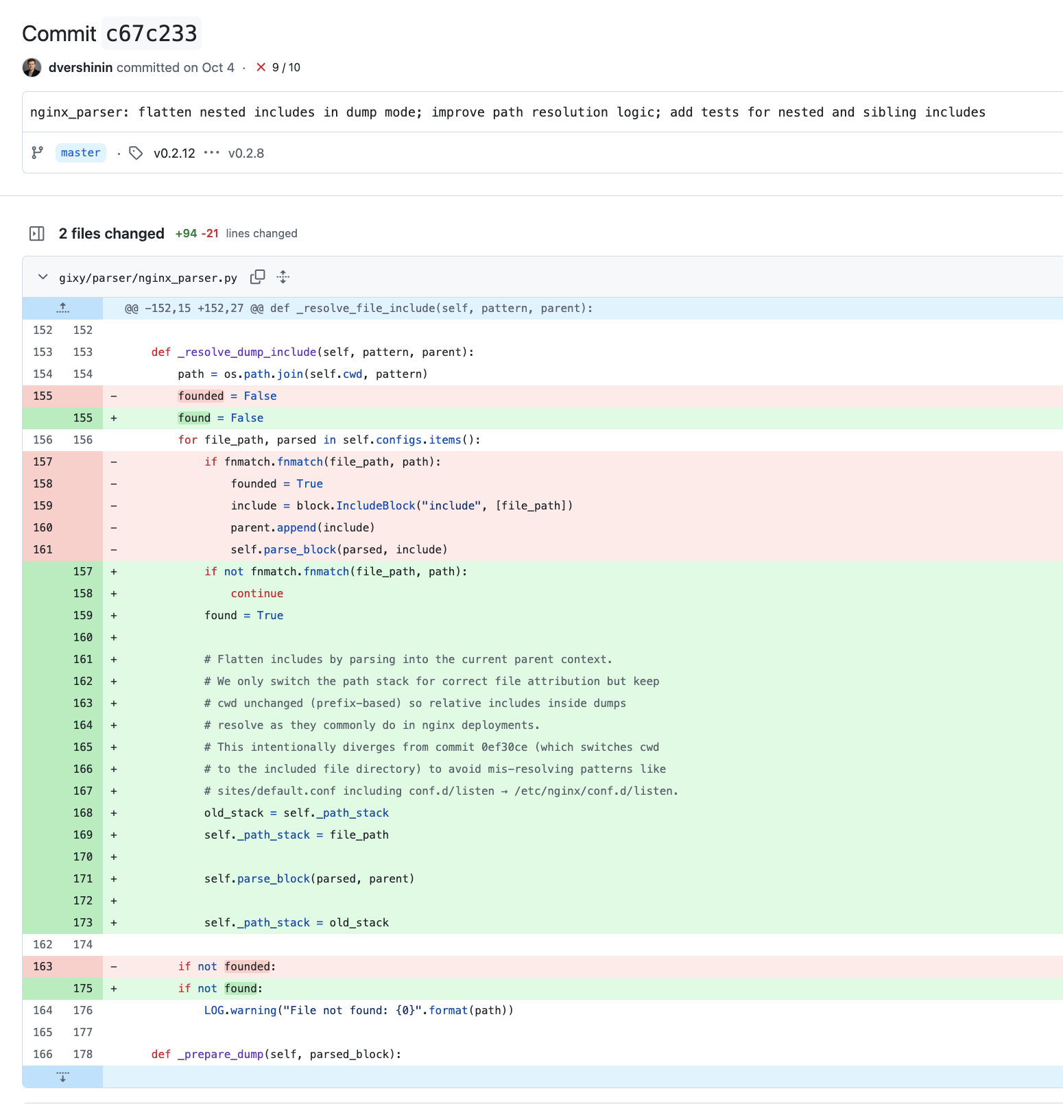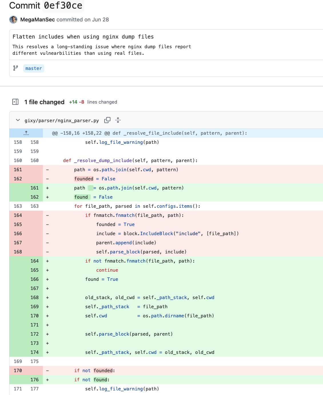 if(...). - Ensured that output was deterministic (the same nginx configuration’s scan output was ordered in the exact same way, every run).